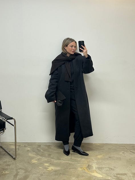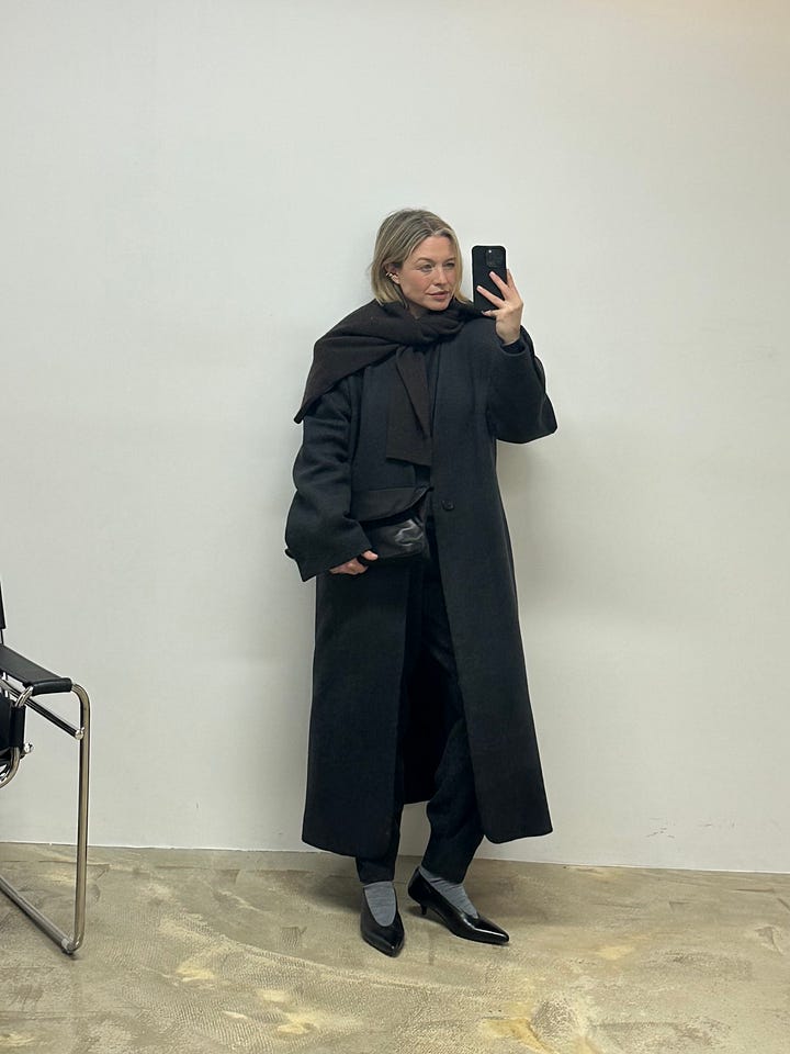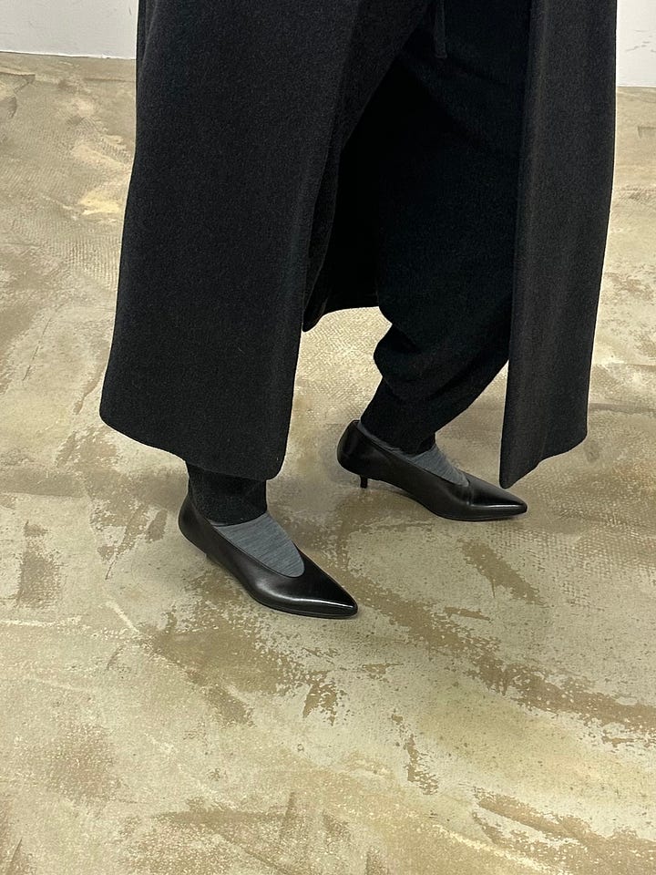 The COS knit draped over the shoulders adds just the right amount of texture — the perfect finishing touch to such an easy look, and one I absolutely love. I also think the shape to the Marsèll pumps is so beautiful.